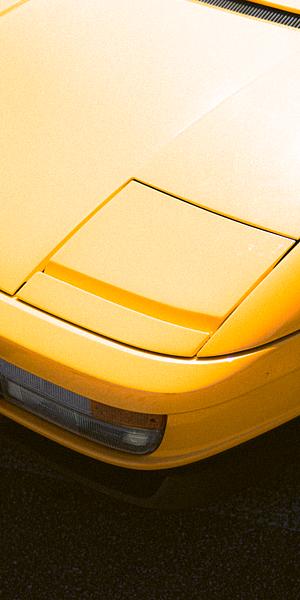 Vintage front corner shot of a Ferrari Testarossa.